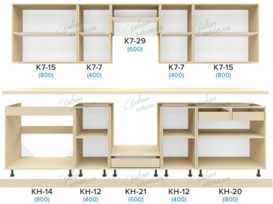 Кухня Феста дуже містка, вона включає достатню кількість тумб та шафок, що дозволяє зручно зберігати кухонний посуд, техніку та аксесуари. Кожна секція укомплектована необхідною фурнітурою, включаючи ручки, петлі та телескопічні направляючі. Всі шафки та тумби оснащені зручними ручками з пластику.