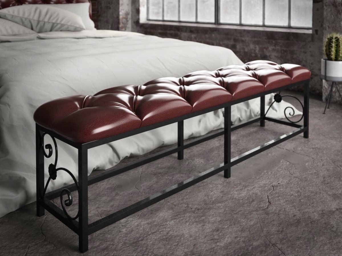 Завдяки м'якому сидінню та тонким кованим ніжкам, ця модель не перевантажує простір і прекрасно доповнює інтер'єр у стилі лофт або класика. Банкетка може служити як підставка для речей у спальні або вітальні, створюючи затишну атмосферу.