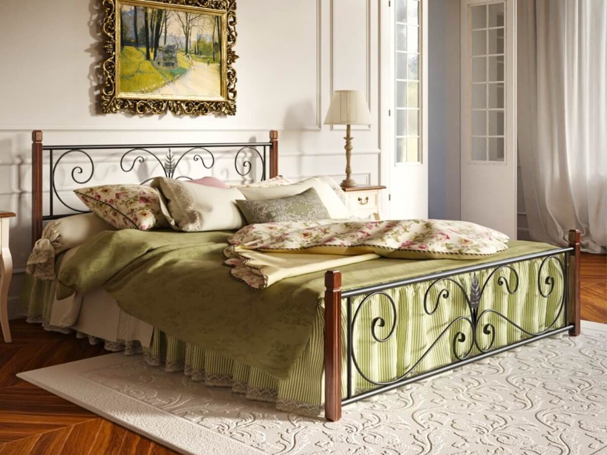 Металеве ліжко Крокус від виробника Tenero поєднує вишуканість ковки та тепло натурального дерева. Узголів'я та узніжжя прикрашені витонченими металевими візерунками, які доповнюють дизайн і додають спальні елегантності. Дерев'яні ніжки у поєднанні з міцною прокатною сталлю забезпечують не лише візуальну привабливість, але й довговічність конструкції.
