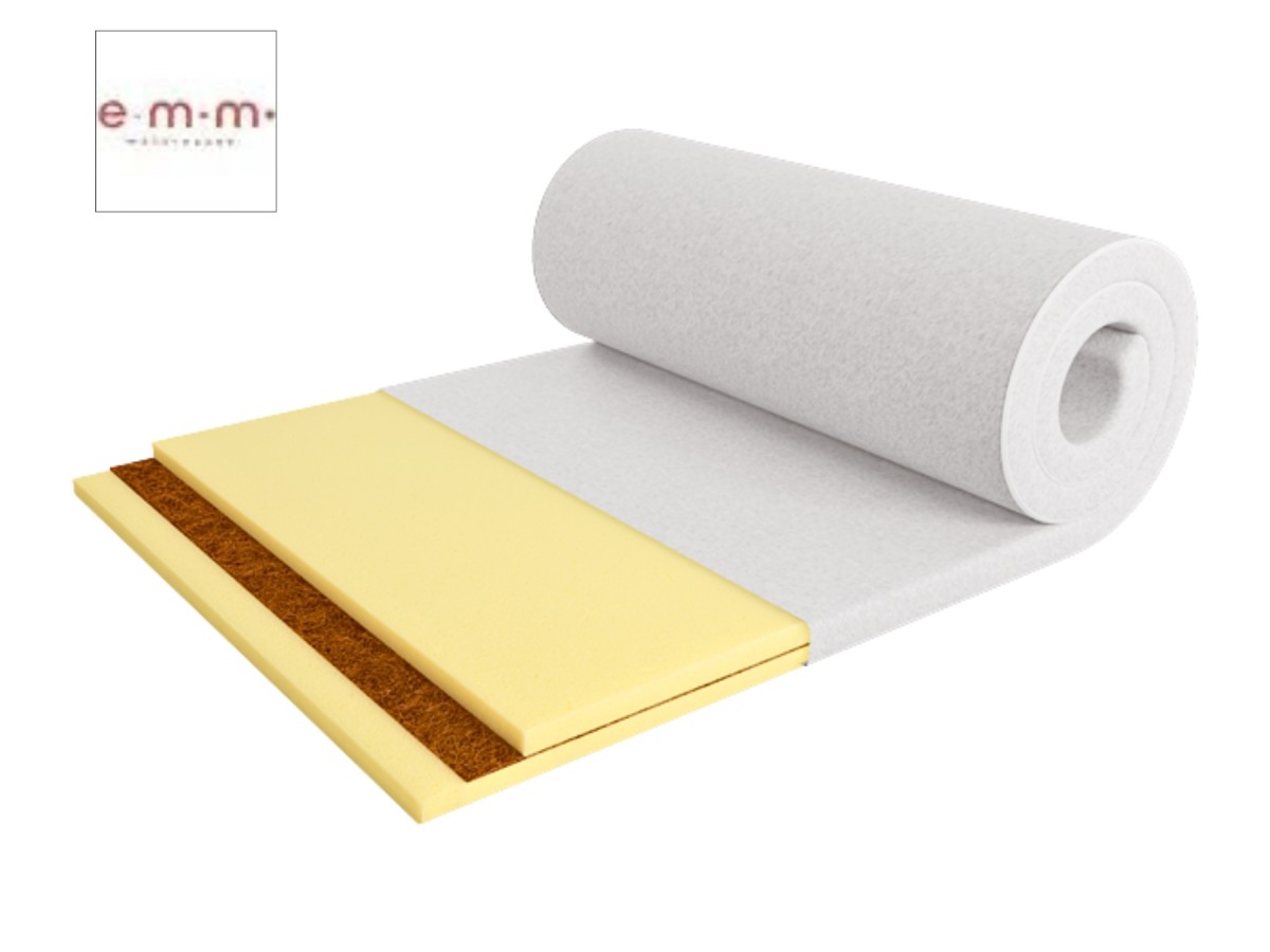 Ортопедичний міні-матрац Twist Cocos від EMM — це двостороння безпружинна модель стандартного цінового класу, створена для підвищення комфорту вашого спального місця. Завдяки висоті 6 см матрац легко використовувати як на диванах, так і на основному ліжку, а фіксатори по кутах забезпечують надійну фіксацію на будь-якій поверхні. У конструкції поєднано ортопедичну піну Ergoflex та латексовану кокосову койру, що формують рівень жорсткості 5/5 з обох сторін. Такий підхід гарантує стабільну підтримку хребта та витримування навантаження до 120 кг, роблячи модель оптимальною для любителів максимально твердих поверхонь.