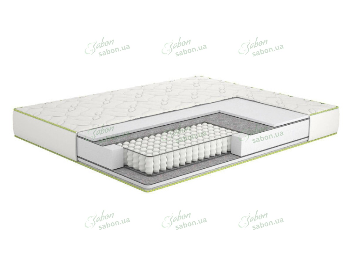 Матрац також має міцний чохол із жаккарду з прошивкою синтепоном, верхній шар піни з мікромасажним ефектом, універсальну жорсткість поверхні та розрахований на інтенсивне використання.