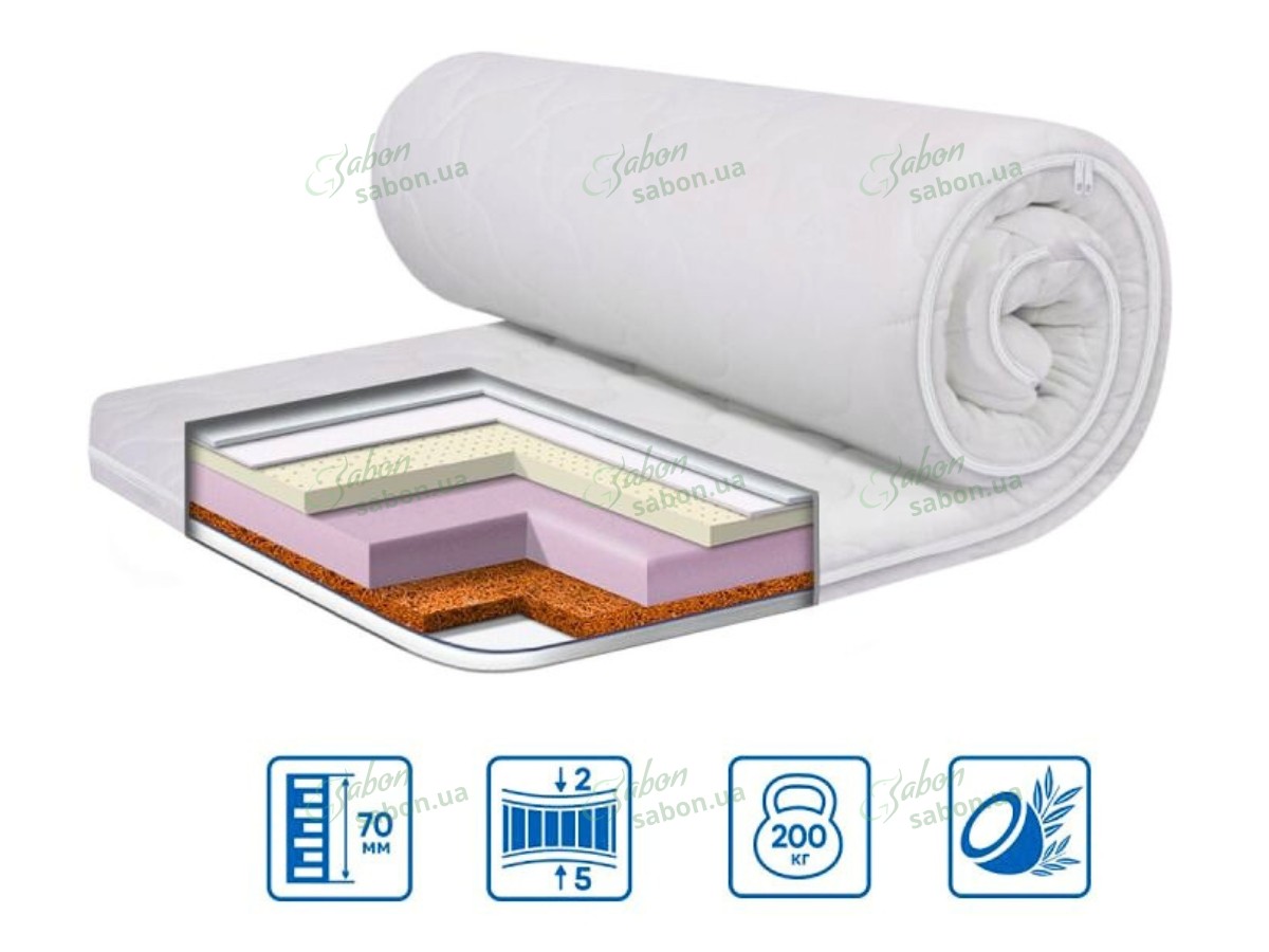 Ортопедичний міні-матрац COCOS-LATEX – це ідеальне рішення для покращення комфорту вашого спального місця. Він допоможе вирівняти поверхню дивана чи ліжка та забезпечити оптимальну підтримку під час сну. Завдяки двосторонній конструкції, топпер має різні рівні жорсткості: одна сторона м’яка завдяки натуральному латексу, інша – жорсткіша завдяки кокосовому шару.