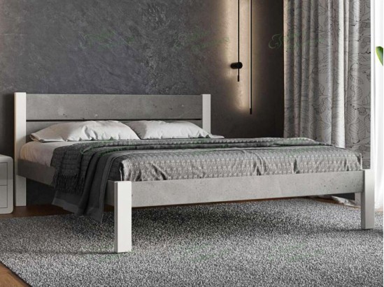 Кровать идеально вписывается в интерьер комнаты в стиле Лофта, а его минималистичный дизайн прекрасно дополнит любое современное спальное пространство. Изготовлено из натуральной древесины, основной материал – дерево сосны, обеспечивает надежность и долговечность. Царги изголовья и подножия выполнены из ДСП в цвете Бетон, что создает стильный контраст.