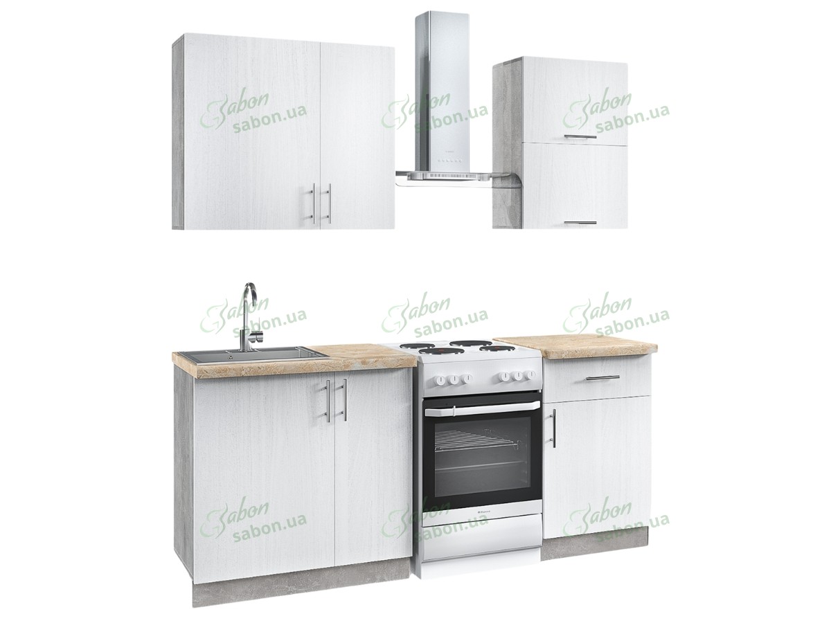 Кухня выполнена из ламинированной ДСП (ЛДСП) и МДФ, что обеспечивает высокую устойчивость к воздействию влаги, перепадам температур и механическим нагрузкам. Это гарантирует длительный срок эксплуатации гарнитуры. ЛДСП корпуса имеет цвет Бетон, а фасады могут быть выполнены в разных оттенках без прибавочной стоимости: антрацит, бетон, белый структурный, дуб Аппалачи, дуб Сонома, дуб Сонома трюфель.