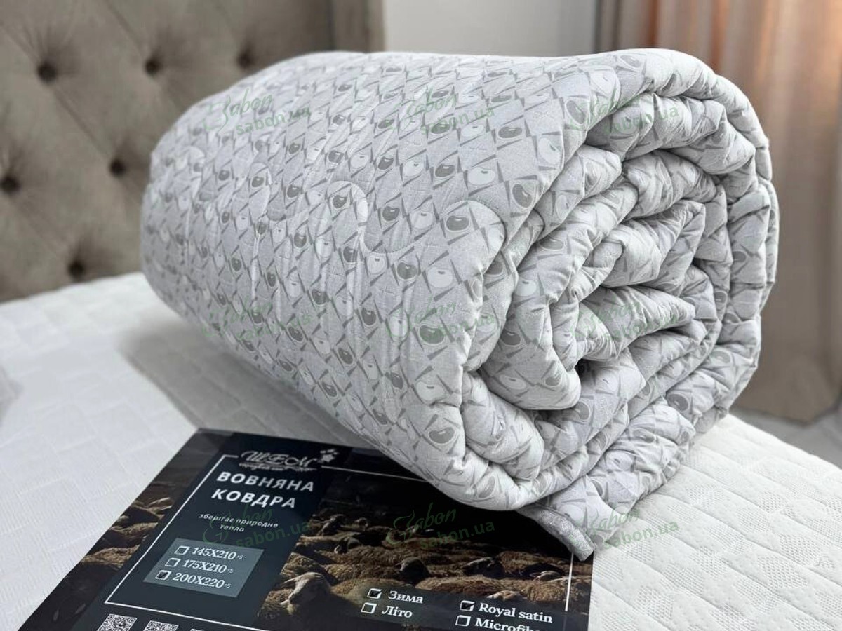 Чехол изготовлен из благородной ткани Royal Satin, отличающейся мягкостью, прочностью и приятной на ощупь фактурой. Одеяло имеет стильный серый цвет с узором, не оборудовано съемным чехлом и относится к категории гипоаллергенных изделий. Модель рассчитана на зимний сезон, сочетая естественную терморегуляцию шерсти и эстетичный вид сатина.