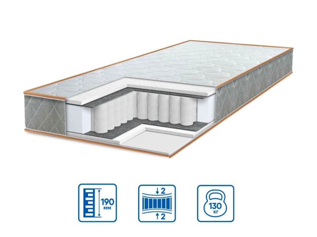 Чехол матраса изготовлен из прочной ткани ЖАККАРД - ткань плотного плетения, простеганная шелковой нитью, что делает ее приятной на ощупь и устойчивой к износу. Ткань не вызывает аллергических реакций, легко очищается и хорошо сохраняет форму даже после длительного использования. Модель выдерживает нагрузку до 130 кг на спальное место, доступна в разных размерах и надежно фиксируется на кровати без скольжения. Уход за матрасом простой и не требует дополнительных усилий.