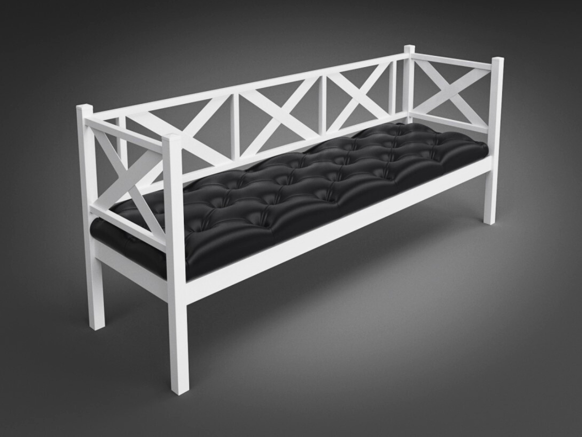 Материалы и конструкция: Каркас дивана изготовлен из прочного металла с порошковым покрытием, устойчивым к царапинам. Сиденье обито стеганой экокожей, что обеспечивает комфорт и долговечность использования.