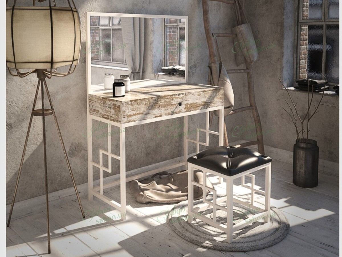 Комплект трюмо и пуф Арден — это сочетание элегантности, функциональности и современного дизайна. Благодаря стильному металлическому каркасу и качественным материалам, этот набор гармонично дополнит любой интерьер, добавляя нотку изысканности и уюта. Трюмо оснащено просторной столешницей, удобным выдвижным ящиком на телескопических направляющих и большим зеркалом, которое визуально расширяет пространство комнаты. Благодаря использованию высококачественной ламинированной ДСП в нескольких вариантах оттенков, вы сможете подобрать идеальное решение для своего интерьера.