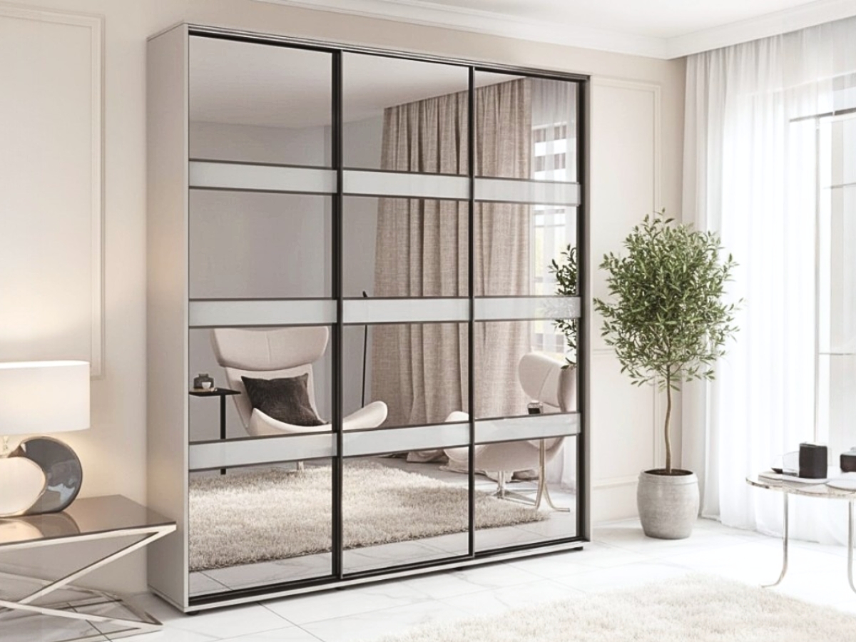 Тридверна шафа-купе з шириною від 180см до 270см створена для комфортного та впорядкованого зберігання.. Може бути виконана з внутрішнім наповненням Комбі 1 або Комбі 2, забезпечуючи гнучке планування внутрішнього простору.