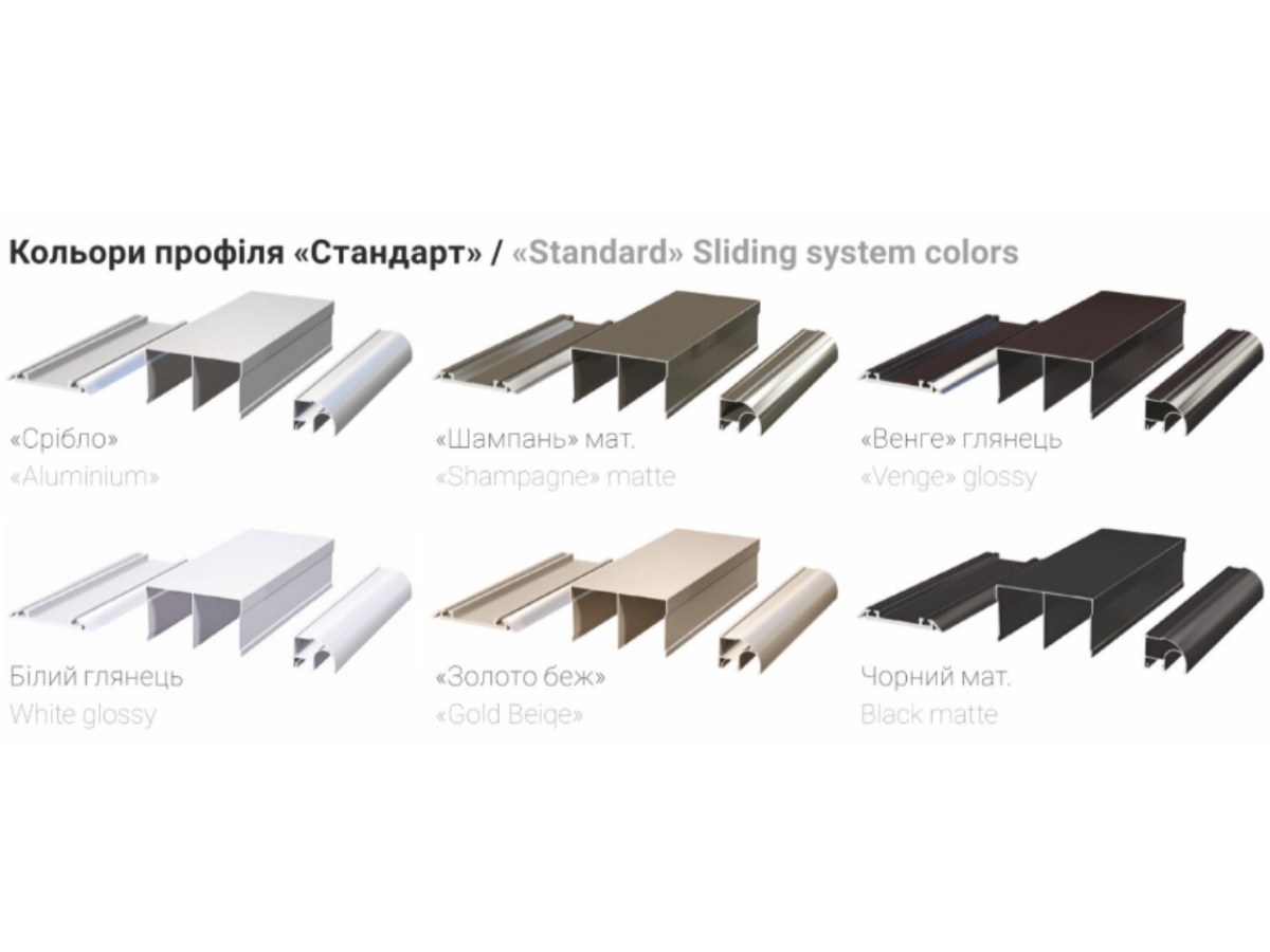 Профіль +70грн до вартості фасаду: венге глянець, шампань мат, шампань глянець