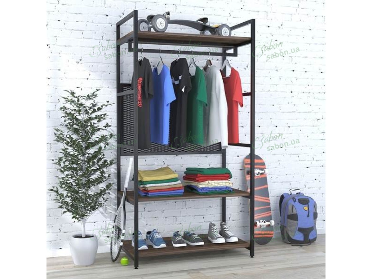 Стелаж LV-100 від виробника Loft Design стане відмінною альтернативою будь-якій старій, громіздкій і негарній шафі радянських часів. Старі меблі тільки займають місце і не прикрашають приміщення. Стелаж LV-100 чудово підходить для зберігання одягу. Це відкрита модель, що має надійний та міцний металевий каркас. Вона легко проглядається з усіх боків. Такий універсальний, сконструйований за сучасним предметом меблів, відмінно впишеться в інтер'єр у стилі лофт або модерн. Модель складається з однієї широкої перекладини під вішалки та трьох глибоких полиць. Таке компонування дозволить ергономічно розмістити речі.